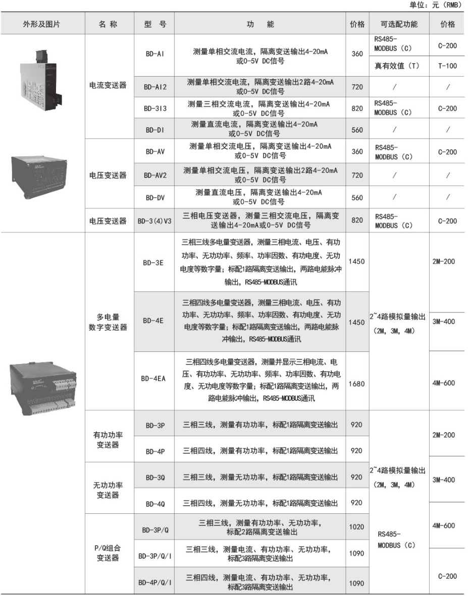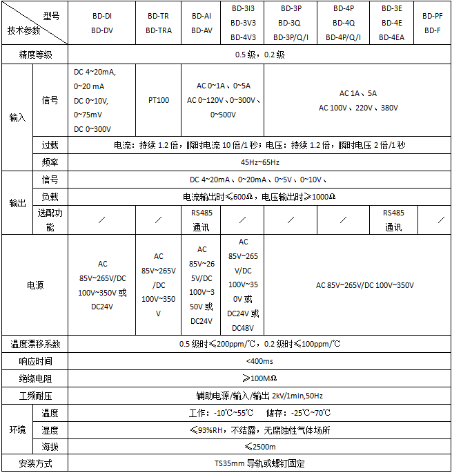 BD系列电力变送器是一种将电网中的电流、电压、频率、功率、功率因数等电参量,经隔离变送成线性的直流模拟信号或数字信号的装置。产品符合GB/T13850-1998、IEC-688标准。
