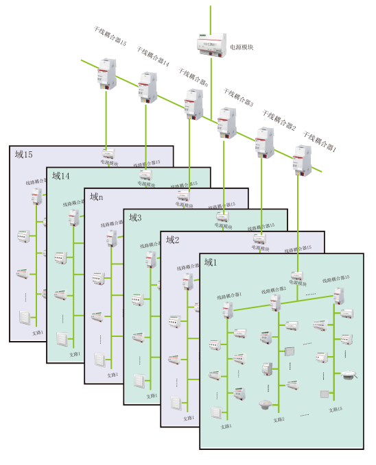 Acrel-Bus智能照明控制系统(以下简称系统),是基于KNX总线技术设计的控制系统。KNX总线技术起源于欧洲,是在EIB、Batibus和EHS这三种住宅和楼宇的总线控制技术上发展起来的,其中EIB(European Installation Bus,欧洲安装总线)是该总线技术的主体。