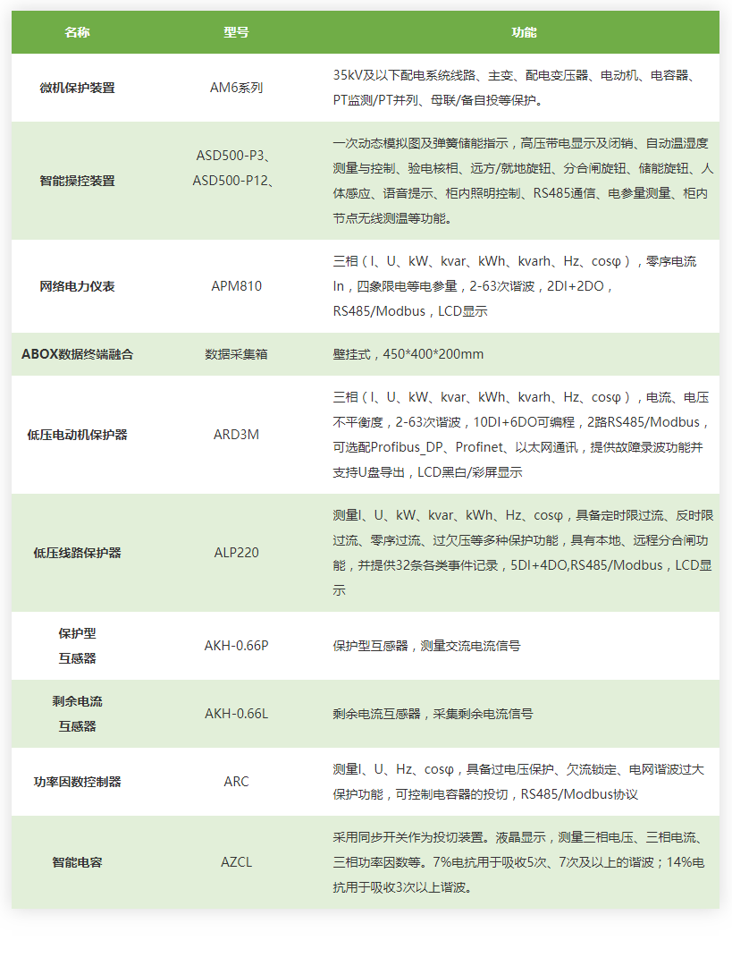 适用于电力、冶金、化工等各类工业现场的电机回路及馈线回路的实时监控和自动化管理。