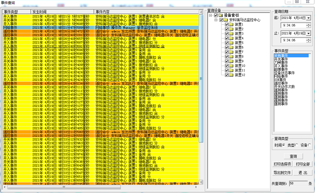 系统能够对遥信变位、电机状态,以及电压、电流、功率、功率因数越限等事件记录进行存储和管理,方便用户对系统事件和进行历史追溯、查询统计、事故分析。