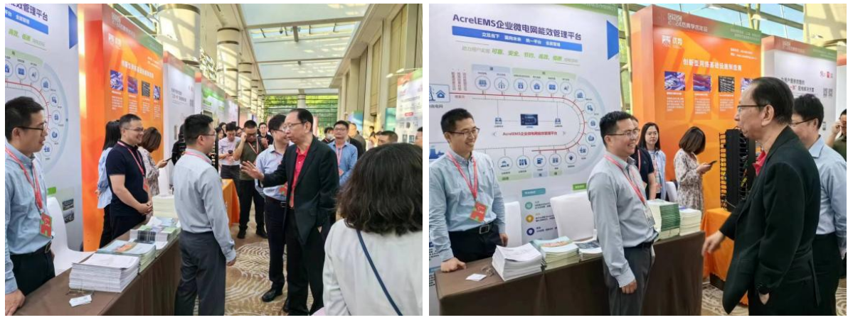 安科瑞精心设立了参观展台,准备了多媒体动画与样品手册,吸引了众多参会嘉宾前来交流互动。期间,杰出青年专家组主任欧阳东先生带领专家组亲临展位参观指导,与安科瑞公司领导友好交流。